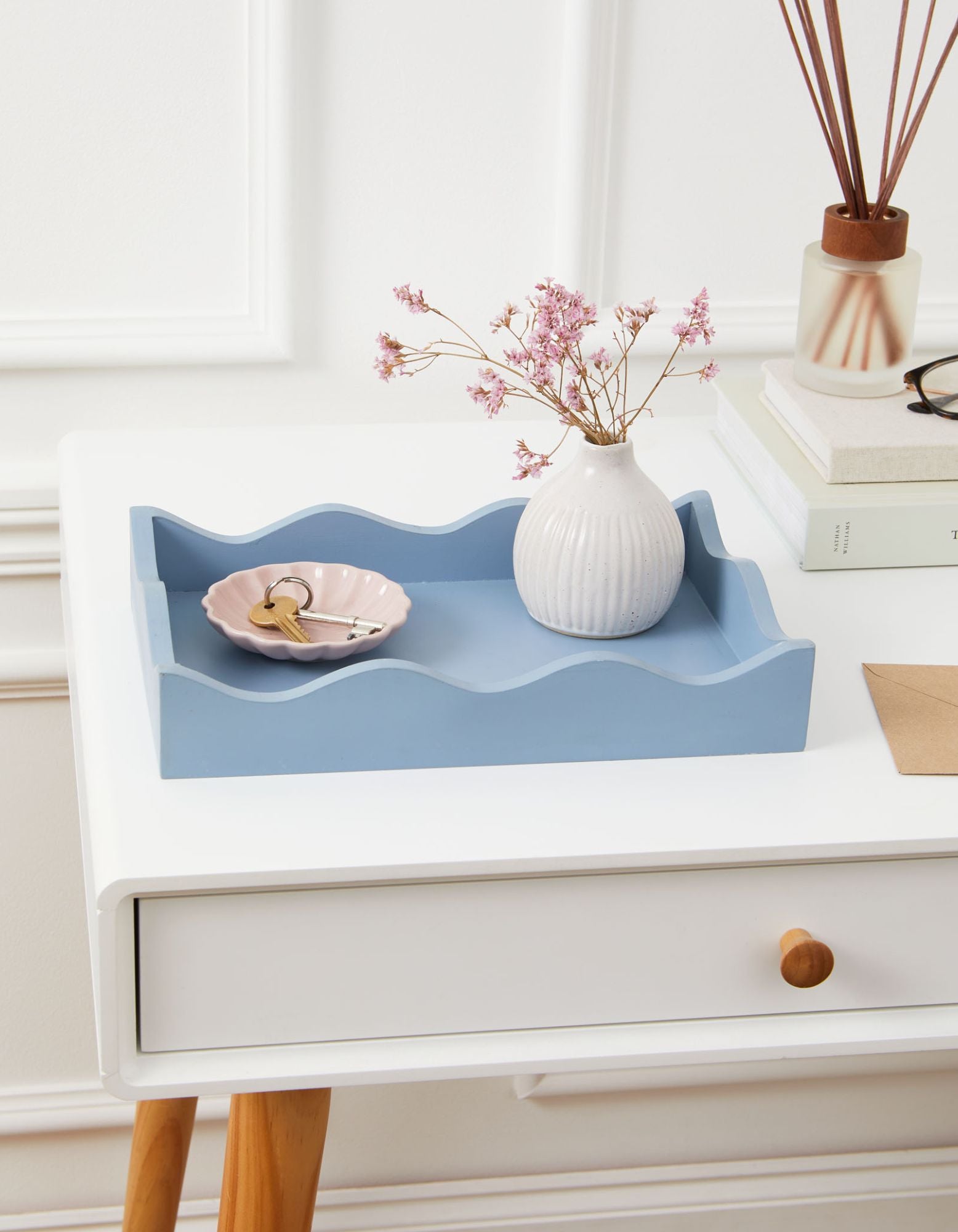 Add a touch of timeless charm to your home with the Curator Home Wave Edge Rectangle Tray available in Brick Red, Soft Chmabray or Frosty Green. Crafted for both style and function, this decorative tray features a beautifully curved wave edge and a sleek matte finish, making it a perfect centrepiece for any space.