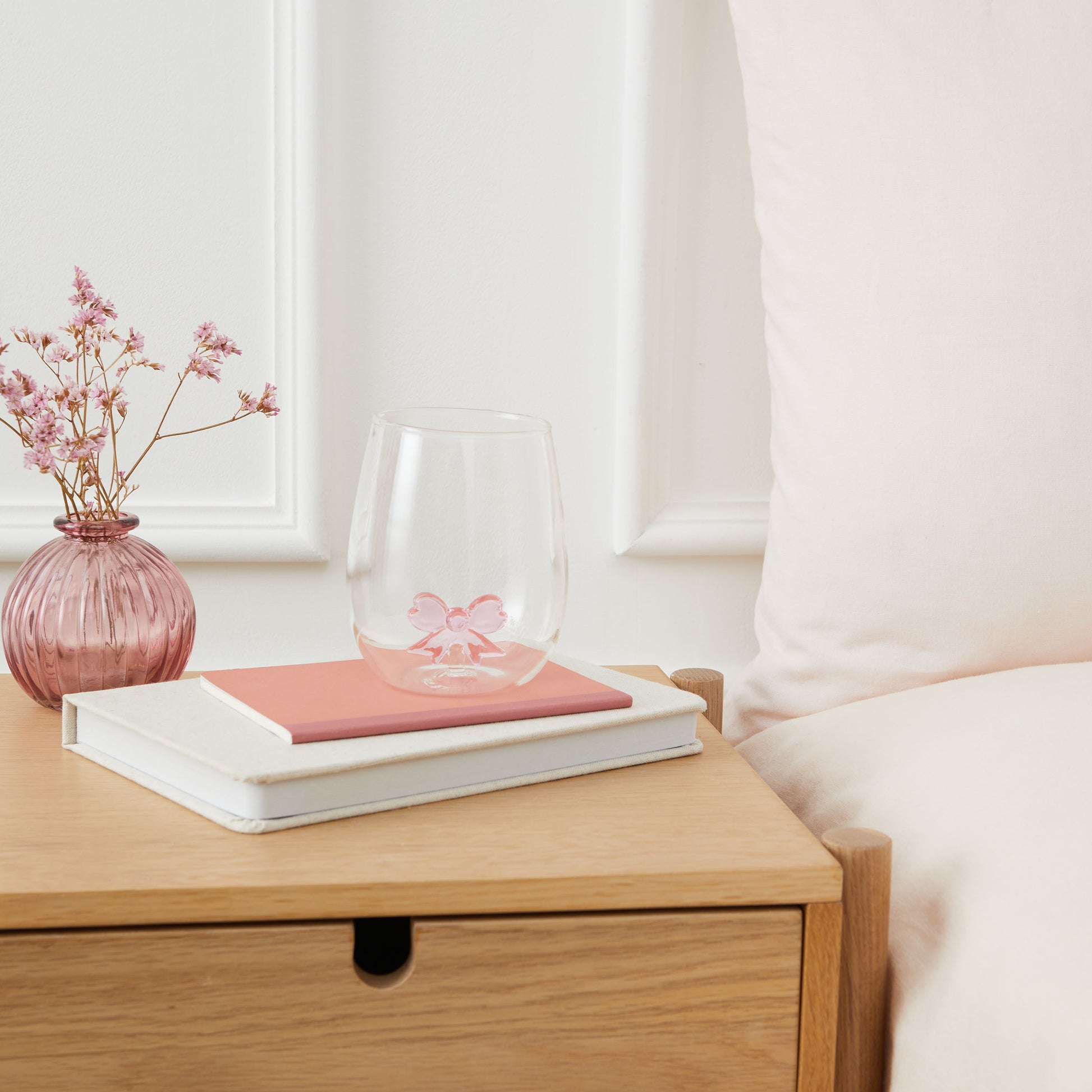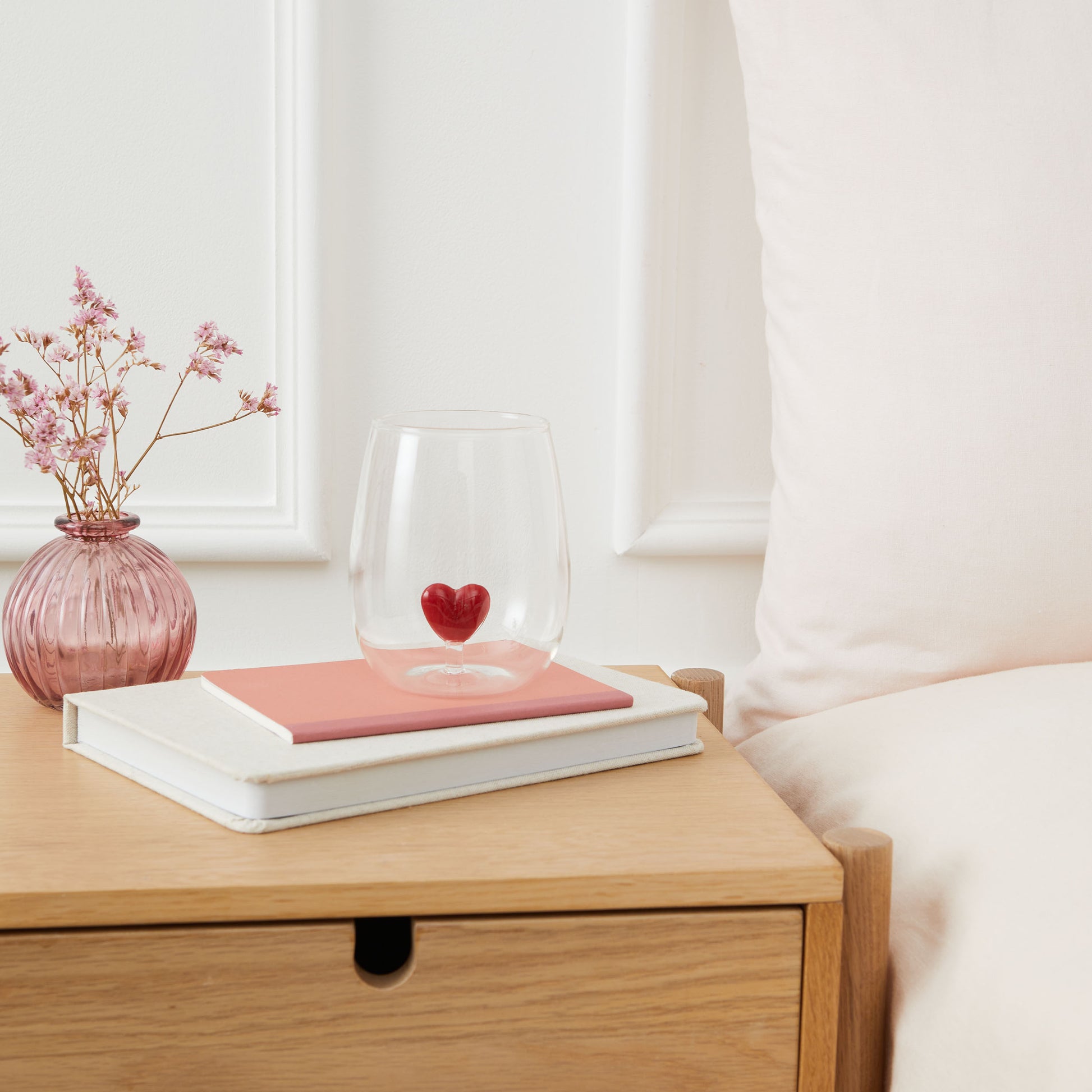 Elevate your everyday tableware with the Curator Home Glass Drinking Glass with Figurine. Expertly crafted from clear glass, each cup contains a charming internal figurine – choose from a red love heart, a pink bow, or a festive Christmas tree in green and red.