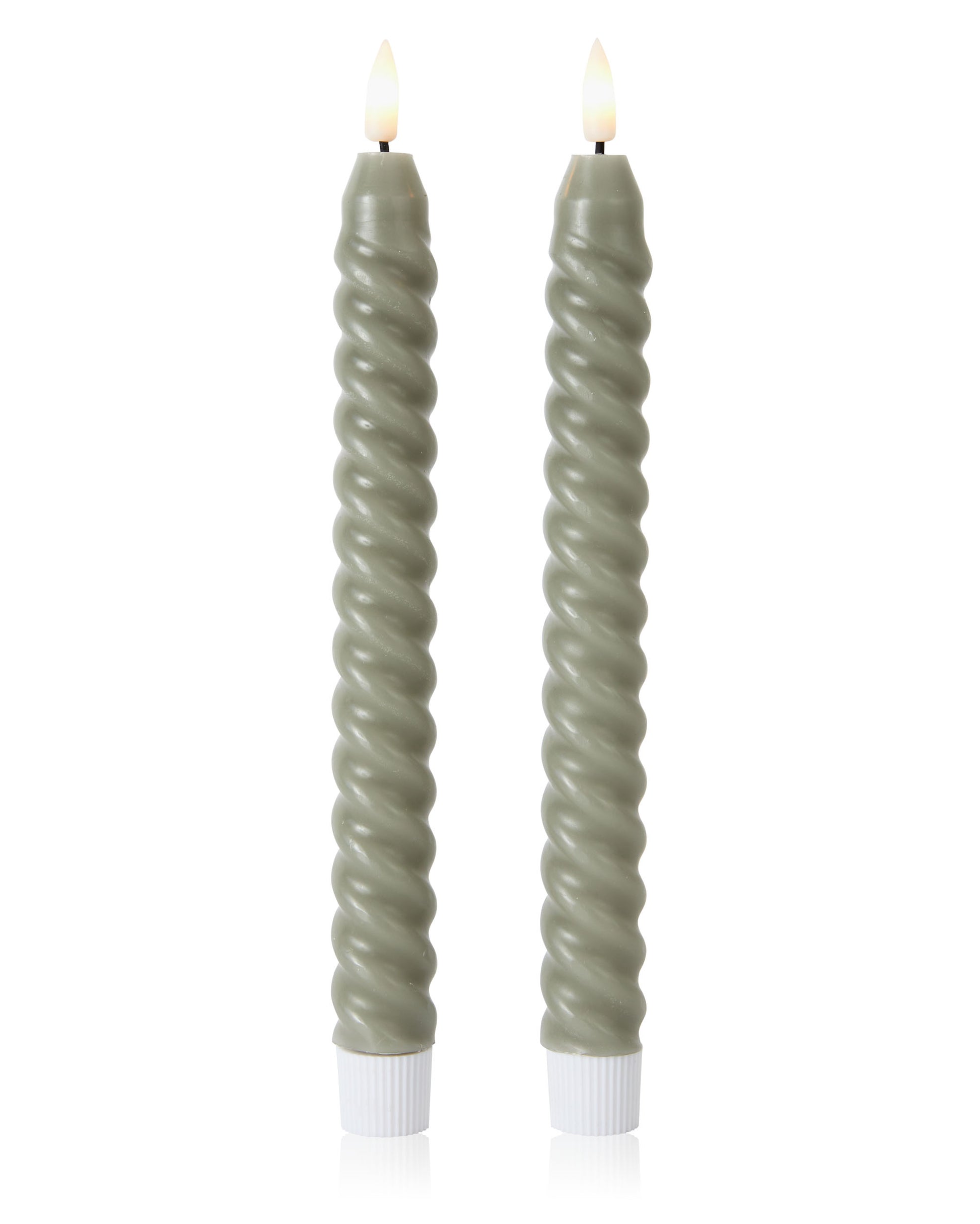 Set of 2 Wax LED Taper Candles with Twist Edge – 22cm Flameless Dinner Candles