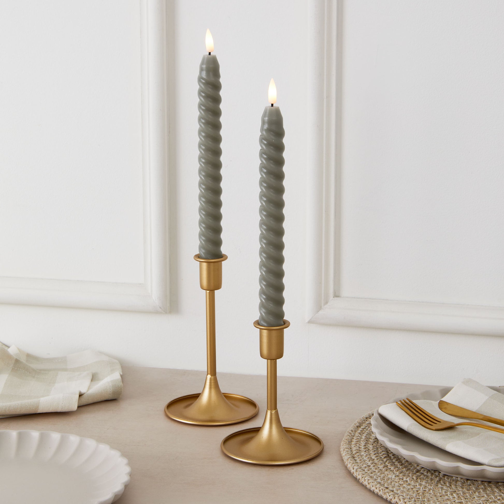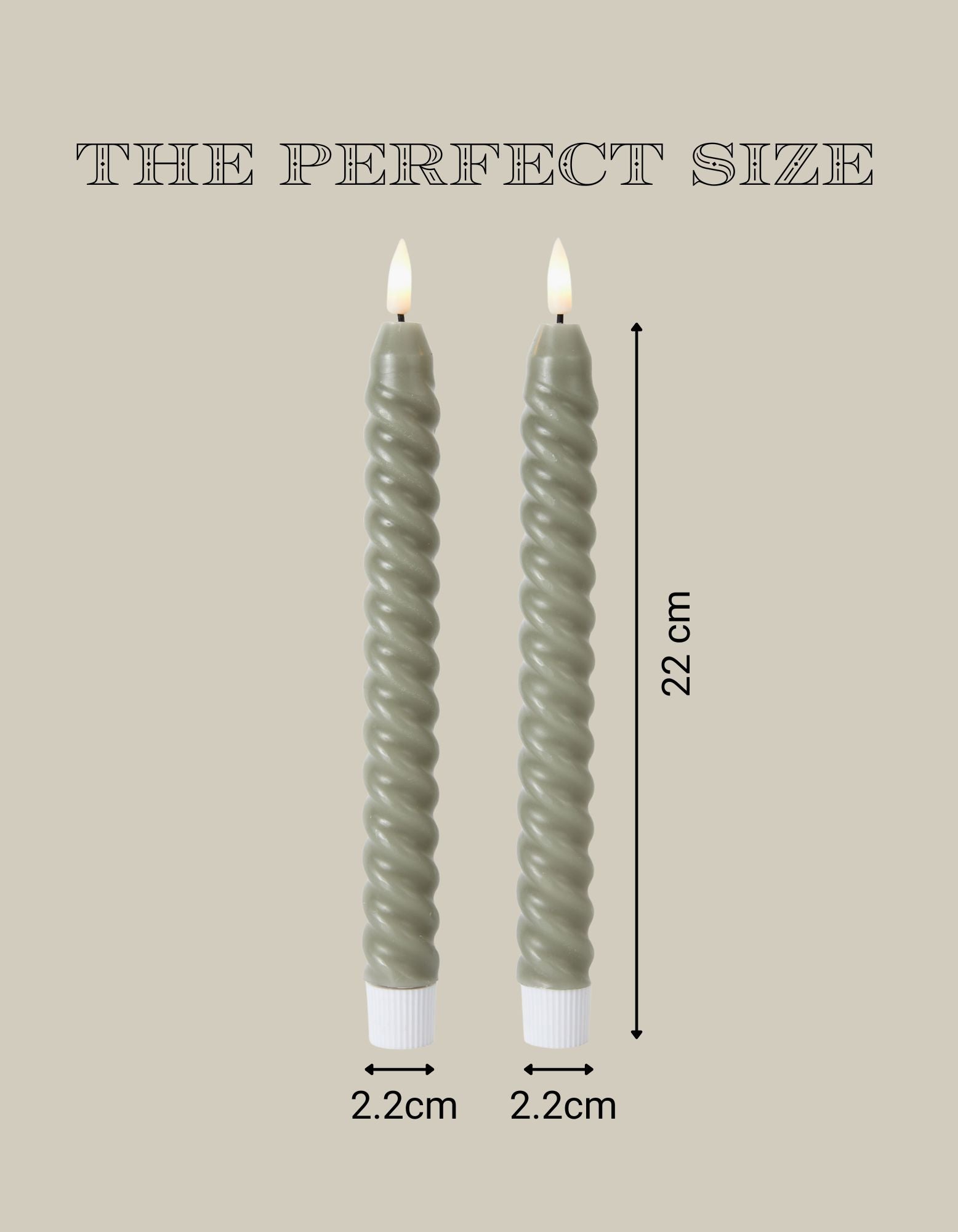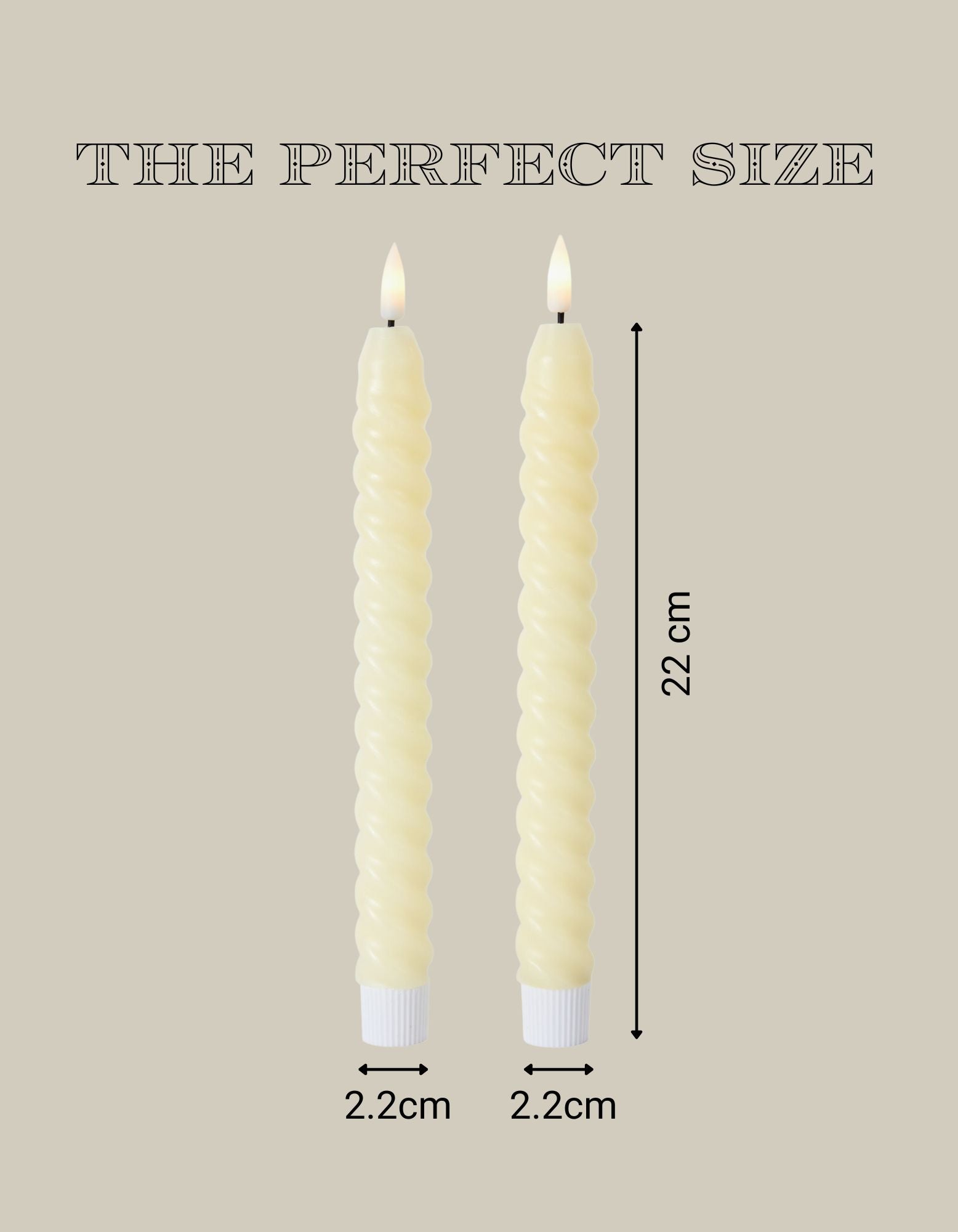 Set of 2 Wax LED Taper Candles with Twist Edge – 22cm Flameless Dinner Candles